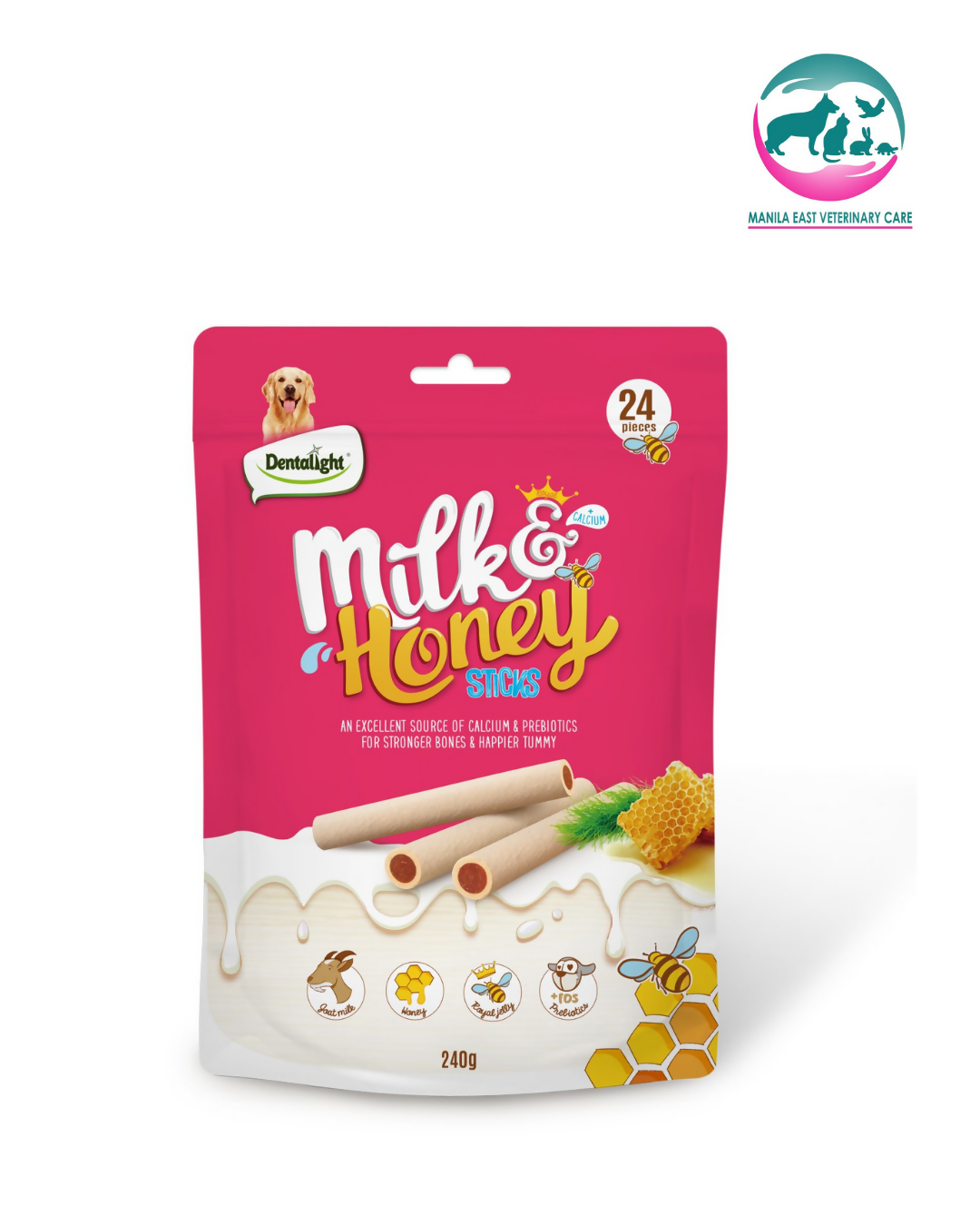 DENTALIGHT PREBIOTIC DOG TREATS MILK & HONEY STICKS 240G 24pcs/PACK